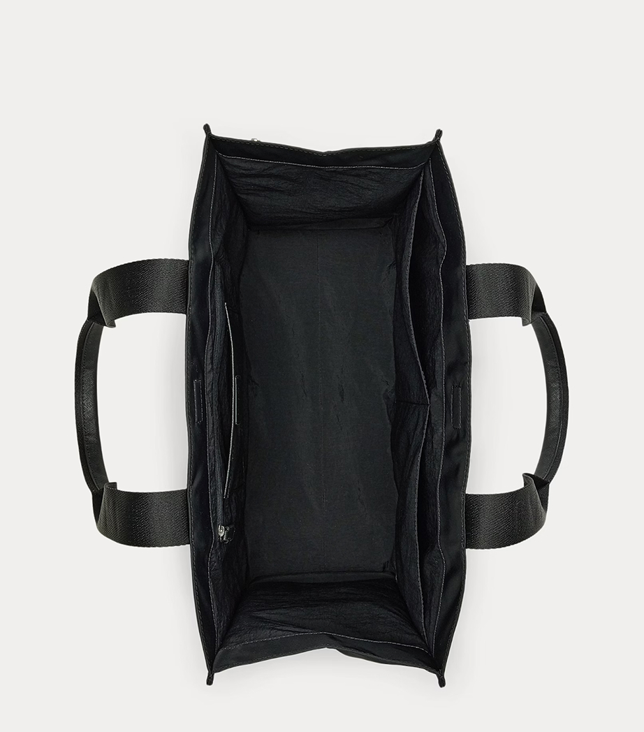 Shell would be black, webbed strap and handles would be yellow, and trim again would be black. One strap would have haqeeqat inscribed in black and the other strap would have BlaknYllw inscribed on it in black, lastly a metal broach saying hq.